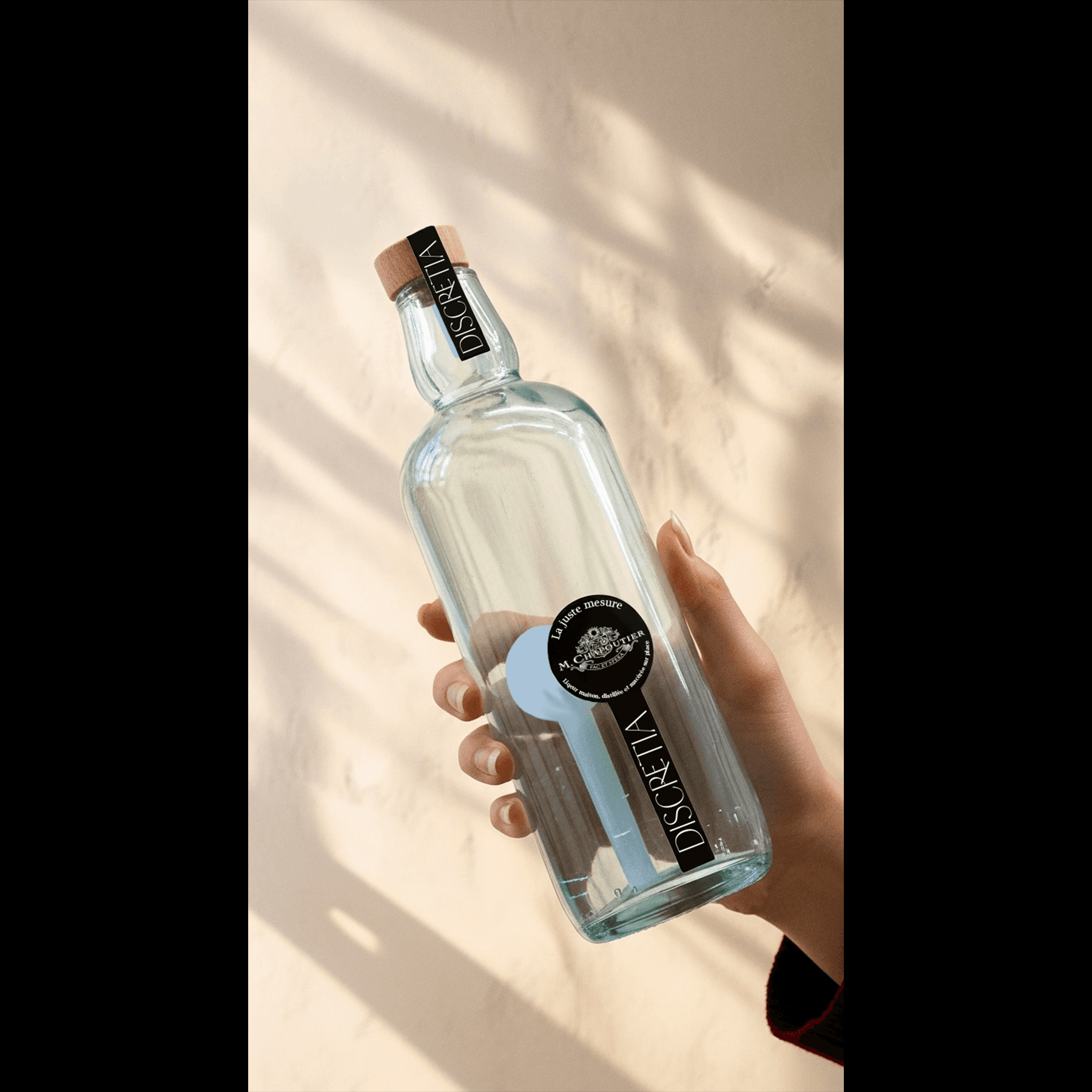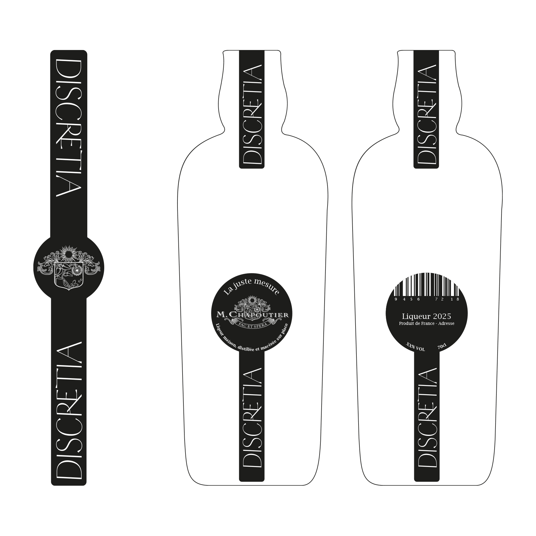 Creation of the Discretia label for Maison Chapoutier. We chose an elongated shape, inspired by a measuring spoon, to stand out from classic formats and evoke precision. The black and white color scheme, a reference to the 200th anniversary label for the Braille system, combined with textured paper, creates a sober and distinctive design, reflecting the Chapoutier spirit.